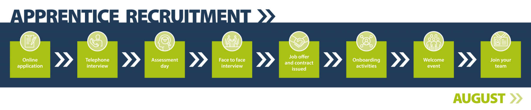 Why don’t you set a reminder in your phone so you can start your application as soon as the apprenticeship you are interested in goes live. Some of our apprenticeships are very popular and we reserve the right to close applications early should we exceed the capacity for any of our advertised apprenticeship role